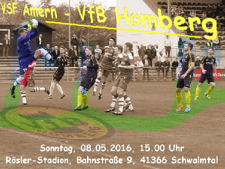 Und was liegt sportlich am Sonntag an? Die 2010 in die Landesliga aufgestiegenen Gastgeber kämpfen als Fünfzehnter gegen den Abstieg. Die Tabellenkonstellation läßt also nur einen Schluß zu: Der VfB Homberg reist als Favorit an und muß drei Punkte holen, um die Aufstiegsträume am Leben zu halten. Das Hinspiel ging 3:1 für die Gelb-Schwarzen aus, die sich damals mit ihrer Chancenverwertung das Leben bis in die Nachspielzeit hinein selbst schwergemacht hatten. Die Homberger Fans dürfen hoffen, daß sich ihre Mannschaft einmal mehr so blendend verkauft wie bislang im Jahre 2016 - und störende Hagelschauer wie vor vierzehn Tagen in Repelen sind diesmal eher nicht zu erwarten...