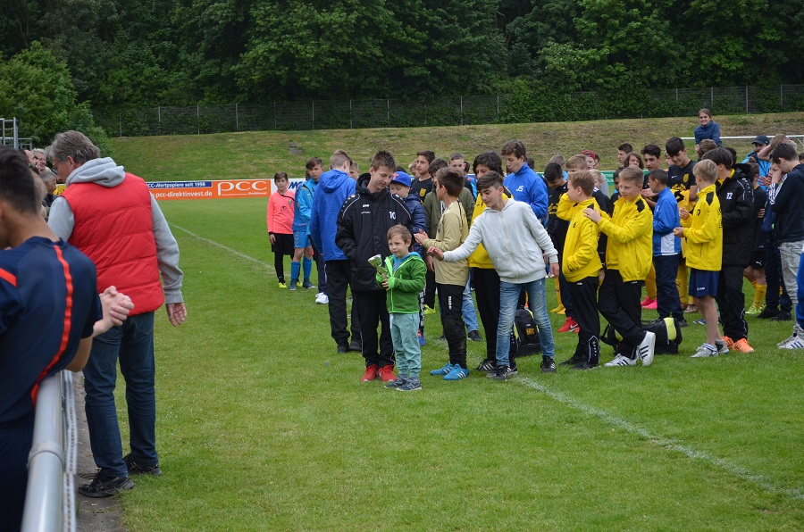 Beim heutigen traditionellen U13 Turnier sahen die zahlreichen Besucher bei optimalem Fußballwetter im heimischen PCC-Stadion interessante und spannende Spiele. Die Leistungsdichte war ziemlich ausgeglichen. In der Vorrunde endeten 10 von 12 Spiele Unentschieden oder nur mit einem Tor Unterschied! Kleinigkeiten entschieden letztendlich den Spielverlauf. Dies setzte sich auch in den Endrunden- und Finalspielen fort als mehrere Elfmeterschießen für die Entscheidung sorgen mussten. Auch Unsere Elf verlor unglücklich im Spiel um Platz 5 nach Elfmeterschießen. Letztendlich holte sich die Mannschaft von Hamborn 07 verdient den Turniersieg. Insgesamt ein gelungener Tag, vielen Dank an alle Helfer für einen reibungslosen Turnierablauf!