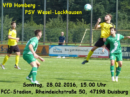 Sonntag: VfB Homberg - PSV Wesel-Lackhausen