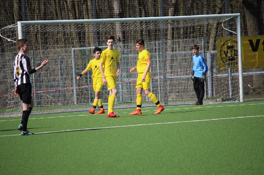 Nach der zweiwöchigen Spielpause durch die Osterferien empfingen wir heute bei fast sommerlichen Temperaturen die C1 vom SV Mönchengladbach 1910 im Pasch-Cup. Und die Spielpause und die Temperaturen merkte man unseren Jungs an. Wir gingen zwar direkt nach Anpfiff in Führung aber bekamen irgendwie keine Ordnung in unser Spiel. So gelang den Gästen auch der Ausgleichstreffer. Nun schaltete unsere Mannschaft einen Gang rauf ohne jedoch spielerisch zu überzeugen. Dennoch konnten wir das Ergebnis bis zur Pause auf 4:1 erhöhen. In der zweiten Hälfte ging es so weiter. Nun hatten die Gladbacher nichts mehr entgegen zu setzen und wir hatten eine Menge an Torchancen. Doch diese wurden teilweise mehr als kläglich vergeben und so dauerte es bis zur 62. Minute bis das nächste Tor erzielt wurde. Danach erhöhten wir bis zum Ende noch auf 7:1. Ein hochverdienter Sieg der aber locker deutlich höher hätte ausfalen müssen. Glückwunsch!