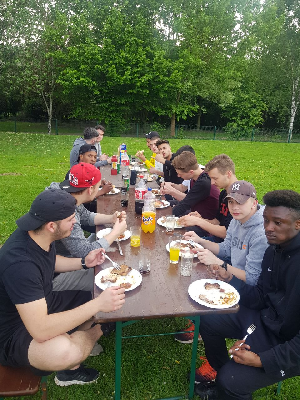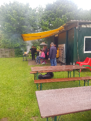 am Toeppersee mit Beach-Volleyball war dann der perfekte Tagesabschluss nach dem anstrengenden Kanufahren. Zusammen mit einigen Eltern, dem Trainer-/Betreuerteam und natürlich den Jungs wurde ein vorzeitger Sasonabschluss begangen, es wurde zünftig gegrillt und ordentlich zugelangt! Auch ein paar Regentropfen konnten die Stimmung nicht vermiesen, zumal ja eine große Holzhütte als Unterschlupf zur Verfügung stand.Viele kannten diese Grillmöglichkeit noch nicht - kann man weiterempfehlen. Und doch schienen einige vom Kanufahren noch nicht müde genug gewesen zu sein, ein zünftiger Beachvolleyball wurde geschlagen. Vielen Dank an alle!