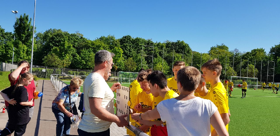 Geahnt hatte man es schon und 90 Minuten vor Spielbeginn wurde es leider wahr. Per Whatsapp sagte die C1 vom VFL Rheinhausen das letzte Meisterschaftsspiel der Saison ab!!! So absolvierten unsere Jungs ein lockeres Trainingsspiel untereinander und feierten anschließend mit den Eltern nochmal die mehr als verdiente Meisterschaft ohne einen einzigen Punktverlust mit der Meisterschale. Glückwunsch!!!