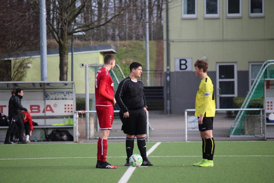 Heute empfingen wir den Jungjahrgang von RW Essen der wenn alles gut läuft in der nächsten Saison in der B-Jugend Bundesliga spielen wird. Bei unserer Mannschaft war die personelle Situation heute wieder sehr angespannt so das einige Spieler aus der B2 aushelfen mussten. Zudem wurde nach einer halben Stunde wieder ein Spieler von uns zur Untersuchung ins Krankenhaus gebracht. Die Pechsträhne scheint nicht abzureißen. Unter diesen Umständen zeigten die Jungs aber eine ordentliche Leistung. Beide Teams hatten einige klare Togelegenheiten. Doch eine Mischung aus Unvermögen, Pech und guten Torhüter-Leistungen ließen die Begegnung schließlich 0:0 enden. Obwohl die Gäste ein leichtes Chancenplus hatten verdiente sich unsere Mannschaft durch eine hohe Lauf- und Einsatzbereitschaft das torloses Unentschieden. Glückwunsch!