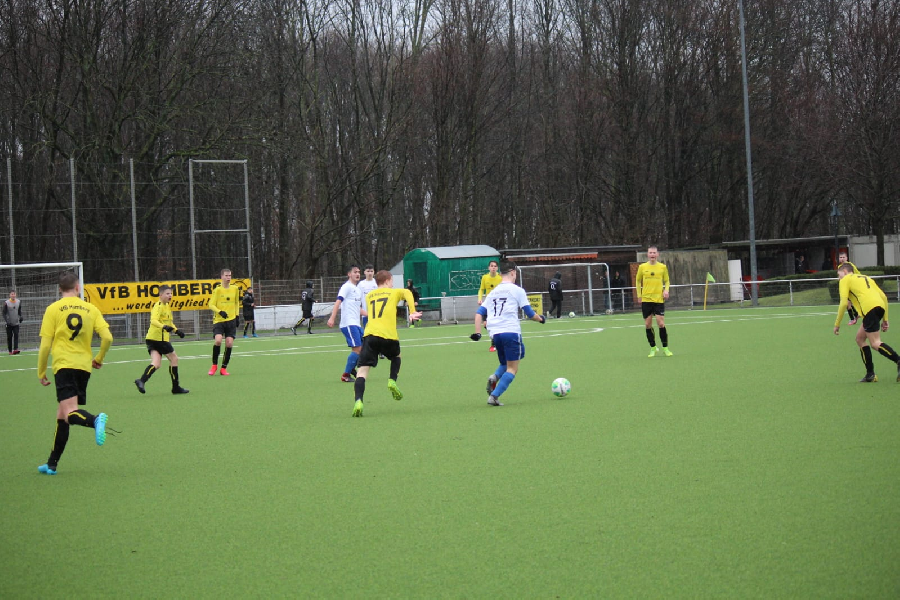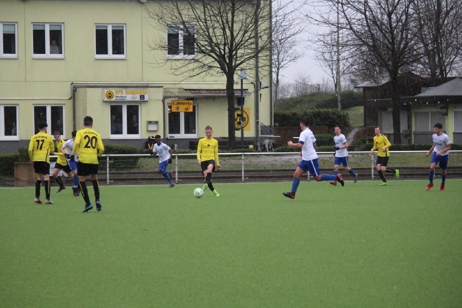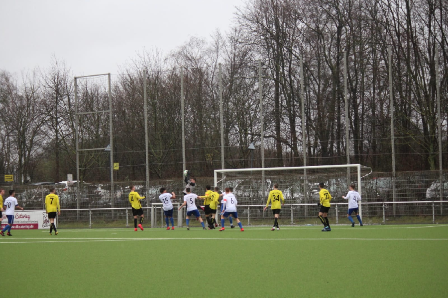 Heute empfingen wir am Karnevalssonntag den Tabellenführer der Bergischen Leistungsklasse die Mannschaft der Sportfreunde Baumberg im Achtelfinale des Niederrheinpokals. Bei "Sauwetter" (Dauerregen und Sturmböen) und zum wiederholten Male Personalnot kam unser Team nur mäßig in die Partie hinein. Dementsprechend gingen die Gäste auch früh in Führung. Aber nach knapp einer Viertelstunde bekamen wir das Spiel immer besser in den Griff und erzielten nach einer schönen Kombination den Ausgleich. Von da an waren unsere Jungs spielbestimmend, allerdings kamen die Baumberger nach Kontern auch das ein oder andere mal gefährlich vor unser Tor. Zur Halbzeit stand es damit 1:1. In der zweiten Hälfte ein ähnliches Bild. Unser Team versuchte die Führung zu erzielen aber bis zur vierten Minute der Nachspielzeit passierte nichts. Dann bekamen wir einen Eckball und mit großen Willen wurde der Ball über die Torlinie bugsiert. Kurze Zeit später erfolgte der Schlusspfiff und der Jubel war groß. Insgesamt ein verdienter Erfolg unserer Jungs und somit steht die Mannschaft im Viertelfinale des Niederrheinpokals. Glückwunsch!