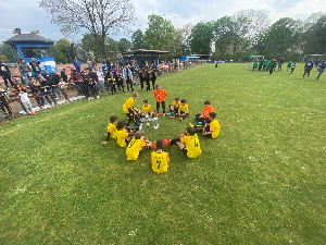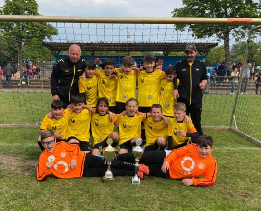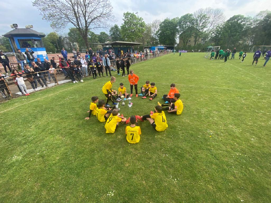 Heute fand das Endturnier um den Duisburger-E1-Stadtpokal statt. Qualifiziert hatten sich 10 Mannschaften. In der Vorrundengruppe setzte sich unsere Mannschaft unter anderem gegen das Team vom FSV Duisburg durch und erreichte so das Endspiel. Gegner waren die Sportfreunde Walsum die sich in ihrer Gruppe mit 16 geschossenen Toren etwas überraschend gegen den Titelverteidiger Hamborn 07 durchgesetzt hatten. Im Finale brannte unsere Mannschaft aber ein Feuerwerk ab. Von Beginn an setzte man die Walsumer unter Druck und das Spielgeschehen fand nur vor dem Walsumer Tor statt. So endete das Finale letzendlich völlig verdient mit 7:0 für unser Team. Damit holten sich die Jungs den Stadtpokalsieg. Glückwunsch!!!