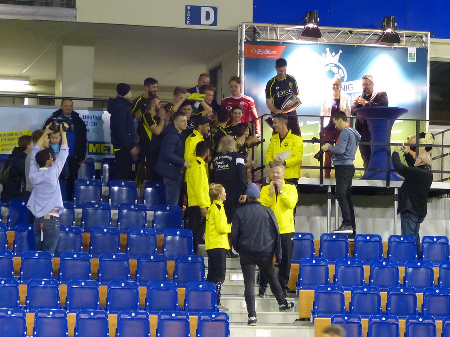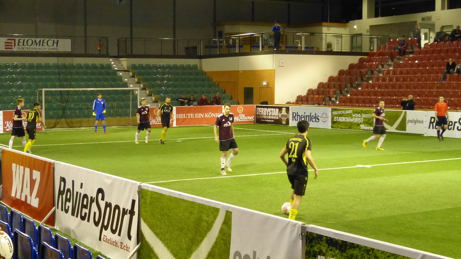 Gegner in der Vorschlußrunde war der nicht in Bestbesetzung angetretene Regionalligist FC Kray, der mit 8:5 bezwungen wurde. Torwart Fabian Groß hielt erneut überragend, vorne wurden die dank feinen Angriffswirbels herausgespielten Chancen gut verwertet. Bei einer Fünf-Tore-Führung zwei Minuten vor Schluß ließ die Konzentration nach, Kray kam noch zu drei Treffern. Den Schlußpunkt setzte Dennis Wibbe - der verdiente Finaleinzug der Mannschaft von Trainer Stefan Janßen stand endgültig fest.