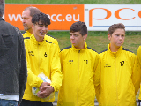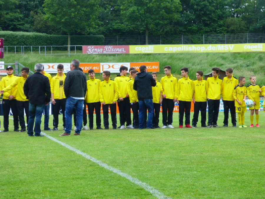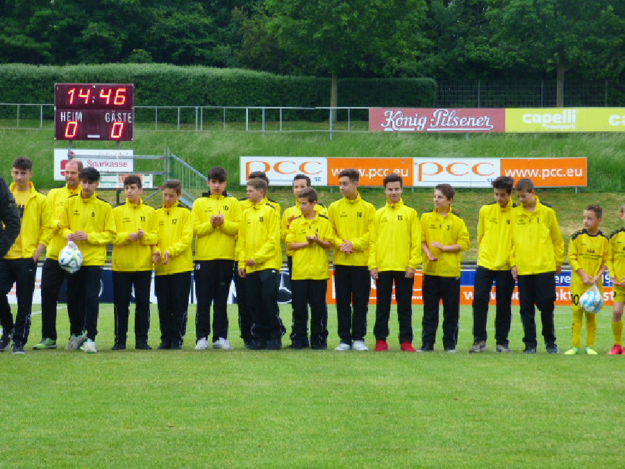 Vor dem Spiel der ersten Mannschaft gegen Viktoria Goch wird die C2/U14 neben der B1 und der E3 für den Gewinn der Meisterschaft der KK1 durch den Jugendvorstand des Vereins geehrt. Die Mannschaft erhält als kleine Anerkennung für diese Leistung einen neuen Spielball aus den Händen von Achim Hellfeier. Hierfür ein herzliches Dankeschön im Namen der Mannschaft.