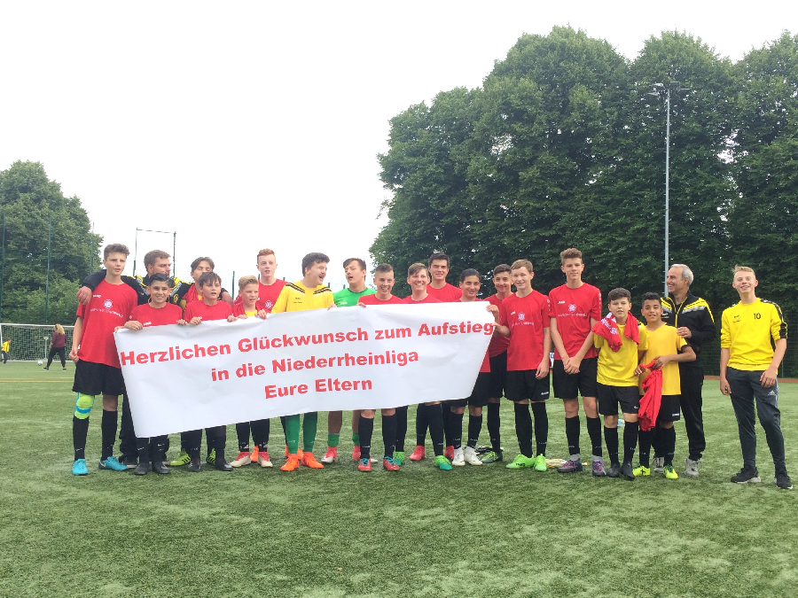 Nach dem Schlusspfiff und dem großen Jubel folgte die gemeinsame Rückfahrt im Bus, auf der Jungs, Trainer und Eltern etwas zu feiern hatten. Niederrheinliga – wir kommen!