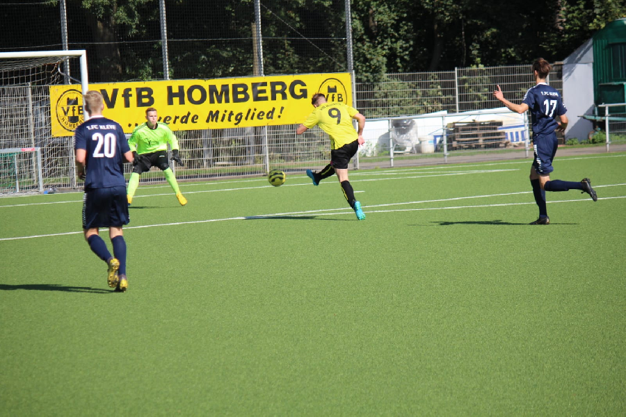 Nach sechs Wochen Vorbereitung und der endlos langen Corona-Zwangspause startete heute endlich der Pflichtspielwettbewerb mit der Qualifikation zur Niederrheinliga. Unsere Mannschaft empfing die U19 vom 1. FC Kleve. Und ausgerechnet heute konnte das Team nicht an die gute Vorbereitung anknüpfen. Während der gesamten Spieldauer konnten viele Spieler die Nervosität nicht ablegen und spielten gehemmt. Obwohl sich die Gäste jetzt auch nicht als Über-Mannschaft präsentierten waren sie unseren Jungs läuferisch und zweikamptechnisch überlegen und zeigten auch den größeren Willen das Spiel zu gewinnen. Erst nach dem 0:1 Rückstand in der 70. Minute ging ein Ruck durch unser Team. Nun versuchten die Jungs nochmal alles zumindest den Ausgleich zu erzielen doch die wenigen Chancen die man dann hatte wurden leider vergeben. So blieb es dann letzendlich bis zum Schluss bei der knappen aber nicht unverdienten Niederlage. Nun gilt es sich kurz zu schütteln, die Lehren aus der Begegnung zu ziehen um dann in zwei Wochen in Speldorf die Chance zu nutzen zumindest über das Relegationsspiel noch die Niederrheinliga zu erreichen!