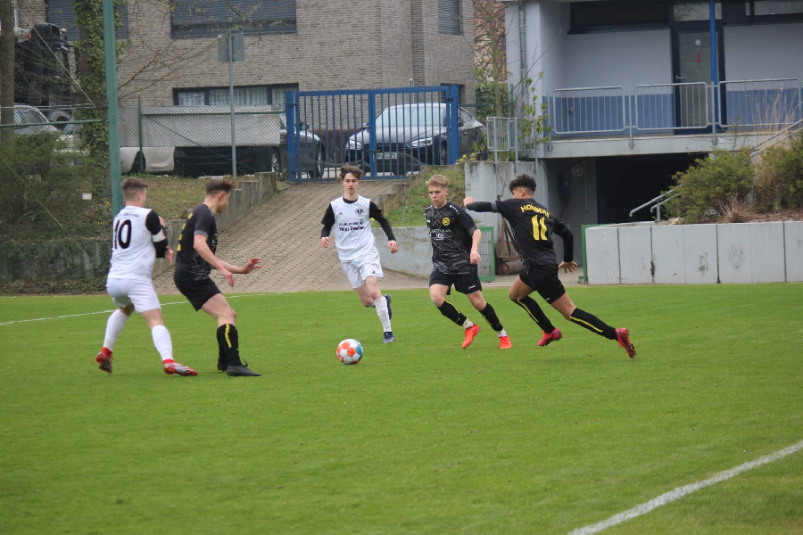 Im Achtelfinale ging es heute für unsere Mannschaft zur U19 von VFL Jüchen-Garzweiler die in der Sonderliga spielt. Und das Spiel begann furious. Anstoß-Schuss-Tor! Nach vier Sekunden führten unsere Jungs aus knapp 50-Meter mit 1:0. Anschließend war unser Team spielbestimmend und hatte das Spiel jederzeit unter Kontrolle. Allerdings fehlte in der ersten Hälfte der letzte Zug zum Tor. So ging man nur mit einer knappen Führung in die Pause. In der zweiten Halbzeit spielten unsere Jungs dann mit mehr Tempo und zielstrebiger nach vorne. Dieses Tempo konnten die Gastgeber in der Defensive nicht mithalten. So erzielte unsere Mannschaft weitere vier Treffer. Einzig ärgerlich war das Gegentor wieder einmal nach einer Standardsituation. Letzendlich endete die Begegnung auch in der Höhe verdient mit 5:1 für unser Team. Damit steht man im Viertelfinale des Niederrheinpokals. Glückwunsch!