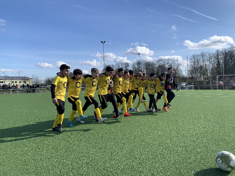 Wie schon im Hinspiel war von der ersten Minute an klar, dass es ein Spiel gegen einen starken Gegner wird, den wir nicht in das Spiel kommen lassen dürfen. Aber die Jungs in schwarz-gelb nahmen das an und hielten körperlich gut dagegen. Und der 6. Minute wurde dann auch das erste Mal gut kombiniert, als Matthias nach schönem Steckpass von Mohamad alleine auf den gegnerischen Keeper zulief, den Ball aber nicht im Kasten unterbringen konnte. Vier Minuten später eroberte Muhammed den Ball bei einem Angriffsversuch der Gäste, trug ihn nach vorne und legte auf Mohamad ab, der zum umjubelten 1:0 einschoss (10. Minute). Leider stellten wir danach das kombinierende Fussballspielen weitestgehend ein und konzentrierten uns auf das körperliche Dagegenhalten. Das haben wir zwar ordentlich gemacht, aber so entstand ein Spiel, in dem sich beide Mannschaften gegenseitig neutralisierten und unsere eigentlich bessere Spielanlage nicht zur Entfaltung kam. Und so ging es mit einer knappen Führung in die Pause.