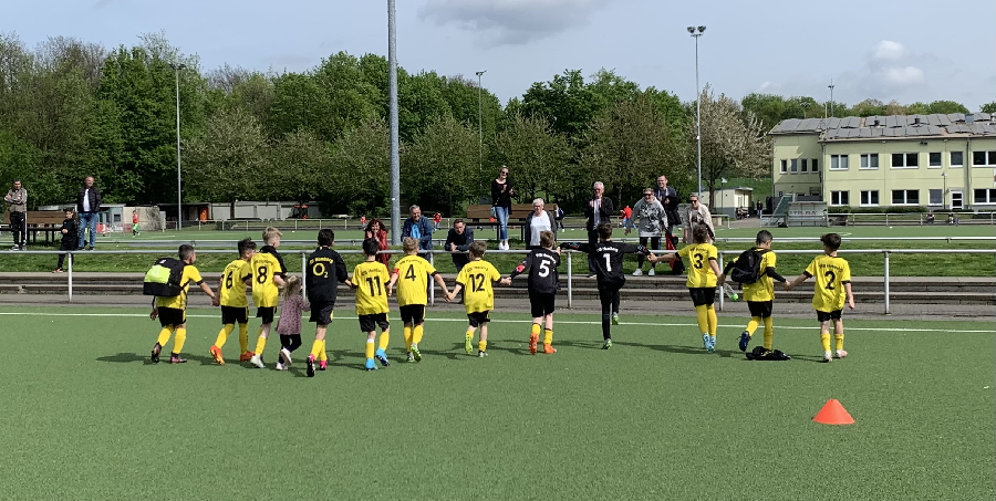 Von der ersten Minute an machten die Jungs in schwarz-gelb heute klar, dass sie keine Überraschung gegen das Schlusslicht zulassen und die Tabellenführung behaupten werden. Es entwickelte sich ein Spiel auf ein Tor, das nach 25 Minuten mit 8:0 in die Pause ging. Dabei wurden noch einige Chancen liegen gelassen oder durch den tapferen Rheinkämper Torwart vereitelt. In die Torschützenliste eintragen konnten sich Matthias (3.), Arian (6.), Muhammed (9.), Mohamad (15., 24.) und Mirza (17., 23., 25.).