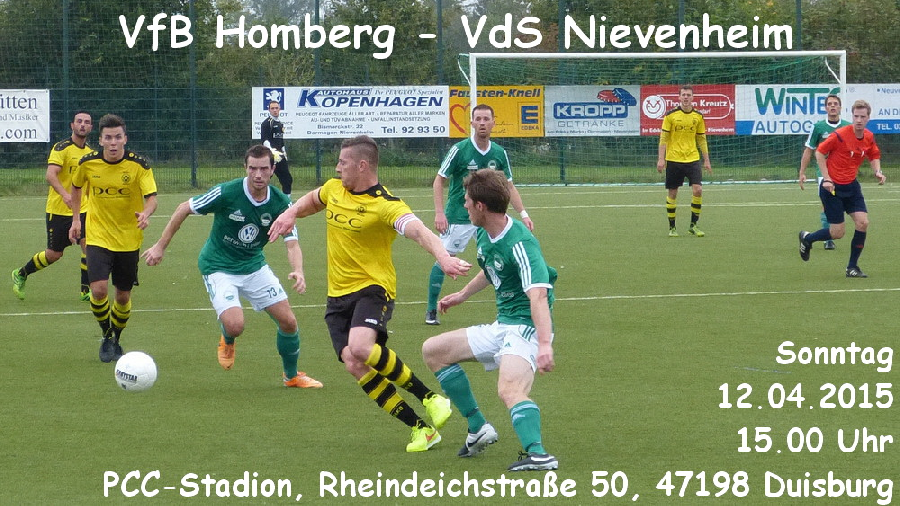 Neun Punkte hat der VfB Homberg in der Hinrunde geholt, in der Rückrunde sind es bislang sieben Zähler. Diese Bilanz muß gegen den VdS Nievenheim unbedingt mit einem Sieg verbessert werden, ansonsten würden am Rheindeich auch die letzten theoretischen Hoffnungsfünkchen erlöschen. Die Gäste aus Dormagen haben 2015 erst einen einzigen Zähler auf der Habenseite stehen - der VfB Homberg geht als Favorit in die Partie. Das Hinspiel brachte den Gelb-Schwarzen übrigens den ersten Saisonpunkt, es endete 1:1 - nur Nievenheims überragender Torwart verhinderte einen VfB-Erfolg. Mit dem gewohnten Einsatz sollte der zweite Heimsieg der laufenden Saison eingefahren werden können, bevor die "Mission impossible" beim Wuppertaler SV fortgesetzt wird.