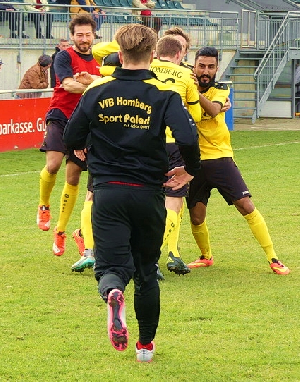 Nach dem Seitenwechsel brachte Trainer Stefan Janßen für Sebastian Santana Stefan Schindler in die Partie, der ebenso wie die später eingewechselten Baran Özcan und Florian Ortstadt für neuen Schwung sorgte. Abgesehen von einer brenzligen Situation im Homberger Strafraum - Philipp Gutkowski reagierte gegen Speldorfs Top-Torjäger Ibrahim Bayraktar glänzend (66.) - sahen die Zuschauer im PCC-Stadion ein Spiel auf ein Tor. Auch die Abwehrspieler schalteten sich in die Offensive ein, Timo Welky beispielsweise war an vielversprechenden Situationen beteiligt. Chance auf Chance wurde ausgelassen, teils überhastet, teils unglücklich und - nicht selten - zu eigensinnig. Doch in der 85. Minute konnten die Homberger Fans endlich jubeln, nach einem Anspiel von Stefan Schindler zeigte Florian Ortstadt fußballerische Klasse und traf sehenswert zum 1:1. Die Erleichterung über den Ausgleich war spürbar - und es kam noch besser: Ein Doppelpaß zwischen Dennis Wibbe und Ortstadt setzte letzlich Sergen Sezen in Szene, der noch einen Haken schlug und dann das runde Leder in die Maschen hämmerte. Ende gut - alles gut.