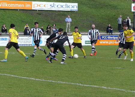 Die Gelb-Schwarzen, die auf Thomas Schlieter, Timo Friede und Eric Holz verzichten mußten, kamen - unter den Augen der erfolgreichen Homberger-Handballer, die zu Gast im PCC-Stadion waren - gegen gut stehende Speldorfer schwer ins Spiel, hätten aber dennoch nach einer halben Stunde führen müssen, doch Dennis Wibbes Schüsse (14. und 16.) flogen knapp am Tor vorbei und der frei auf das Speldorfer Tor zulaufende Marcel Kalski scheiterte am ehemaligen Homberger Keeper Martin Hauffe (18.). Als sich dann der zweite Ex-Homberger Janis Timm über die rechte Seite durchsetzte und - unterstützt von gleich zwei Fehlern der Gastgeber - den Ball ins lange Eck versenkte, war der Spielverlauf auf den Kopf gestellt. Bis zum Halbzeitpfiff des guten Schiedsrichters Tim Flores lag der Ausgleich noch mehrfach in der Luft, doch es ging mit dem 0:1 in die Kabinen.