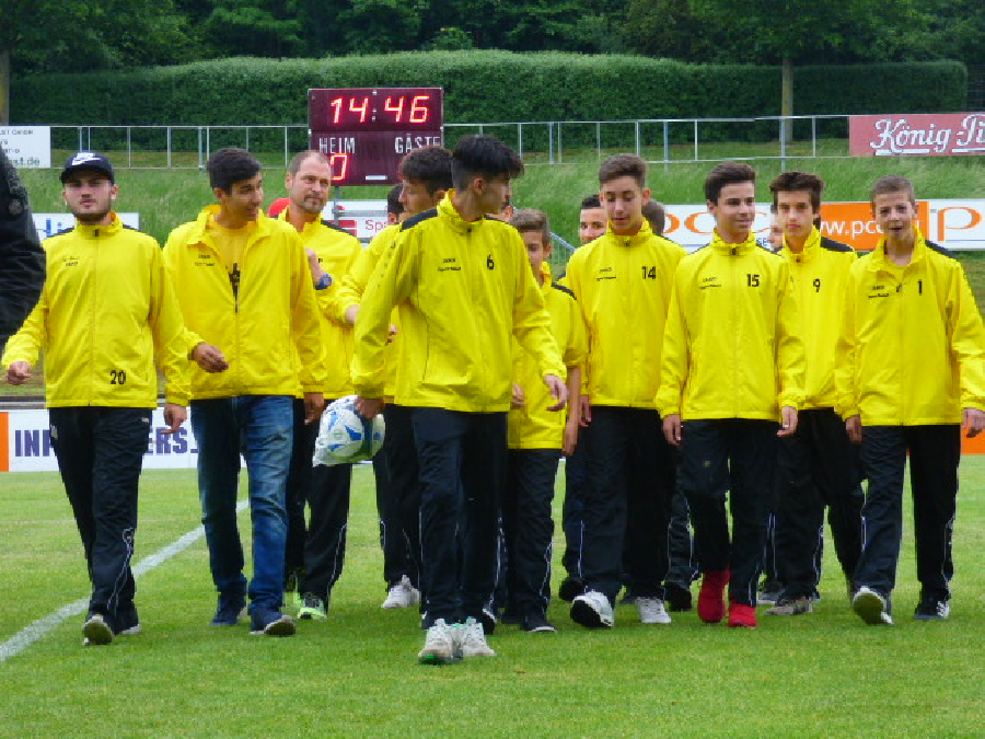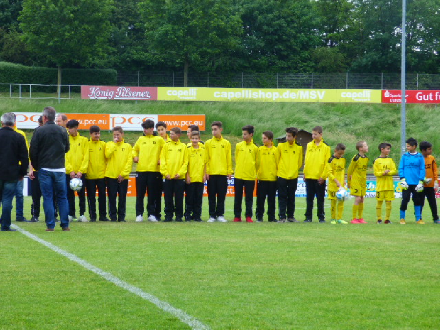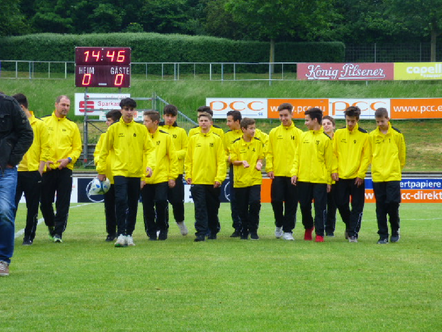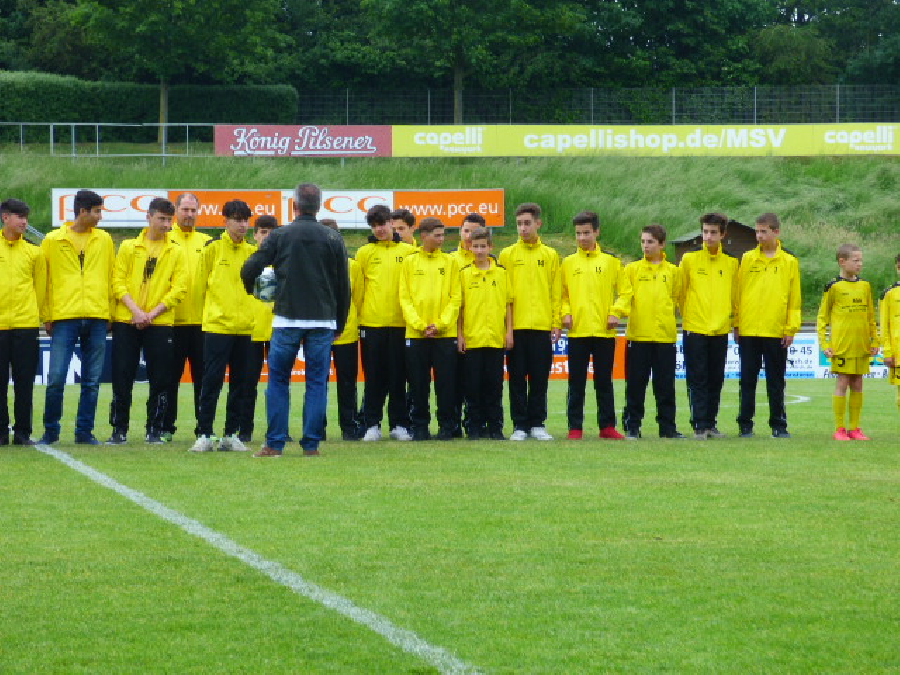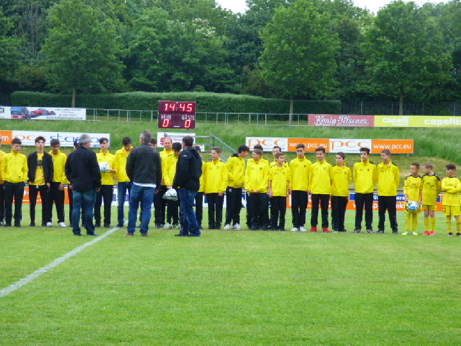 Vor dem Spiel der ersten Mannschaft gegen Viktoria Goch wird die C2/U14 neben der B1 und der E3 für den Gewinn der Meisterschaft der KK1 durch den Jugendvorstand des Vereins geehrt. Die Mannschaft erhält als kleine Anerkennung für diese Leistung einen neuen Spielball aus den Händen von Achim Hellfeier. Hierfür ein herzliches Dankeschön im Namen der Mannschaft.