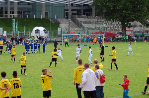Beim letzten Turnier vor der Sommerpause dem Provinzial-Cup in und um der Esprit-Arena in Düsseldorf zeigten wir in der Vorrunde eine sehr gute Leistung. Vier Spiele, alle gewonnen mit einem Torverhältnis von 15:0, erreichten wir souverän das Achtelfinale. Dort trafen wir auf Union Frintrop und auch hier waren wir die klar bessere Elf. Obwohl wir fast nur in der gegnerischen Hälfte spielten versäumten wir trotz guter Chancen das Spiel für uns zu entscheiden. So kam es zum Elfmeterschießen. Hier war das Glück nicht auf unserer Seite und so schieden wir gegen den späteren Endspielteilnehmer mehr als unglücklich aus. Trotz alledem ein schöner Saisonabschluss. Allen Spielern und Eltern schöne und erholsame Ferien. Trainingsbeginn unserer Mannschaft wird am Montag der 01.08. sein.