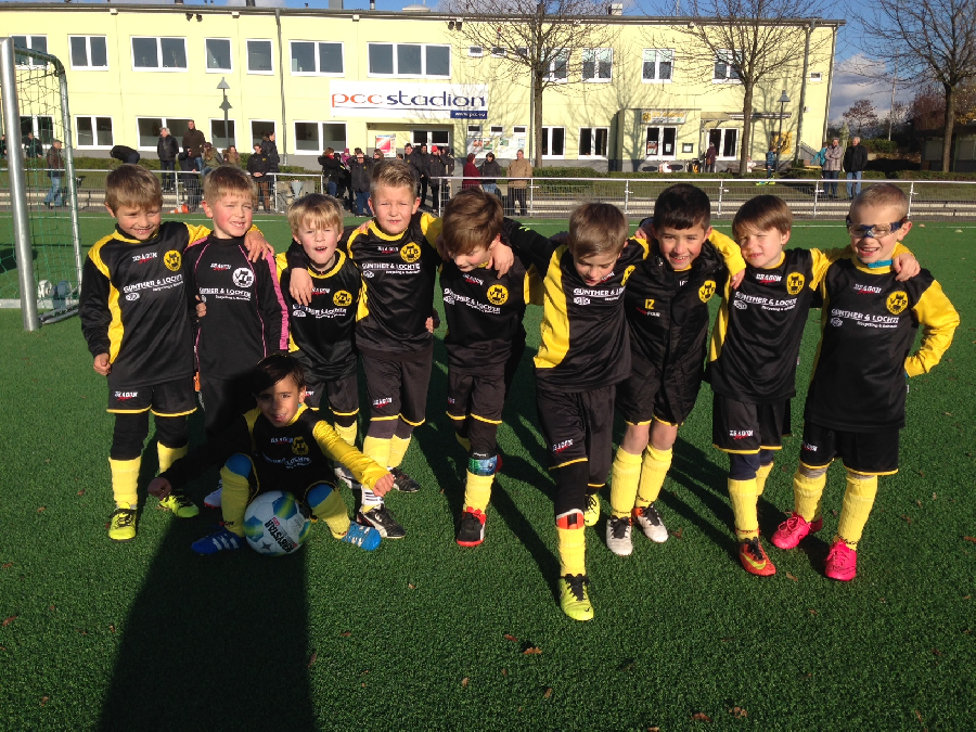 Bei tollem Novemberwetter konnten die zahlreichen Gäste- und Heimfans eine offene und faire F-Jugendpartie zweier gleichstarker Teams auf dem Kunstrasenplatz des PCC-Stadions verfolgen. Beide Mannschaften versuchten zunächst aus einer sicheren Defensive schnelle Angriffe Richtung gegnerischer Tore zu setzen, woraus sich auf beiden Seiten auch gute Einschußmöglichkeiten ergaben. Entweder entschärften jedoch beide sehr guten Torleute die Schüsse oder die Stürmer zielten nur knapp am Gehäuse vorbei. Die zweite Spielhälfte begann mit einem Hammer an den Pfosten des VfB Tores. Dies war jedoch für unsere Jungs wie ein Weckruf und das Spiel verlagerte sich etwas mehr in die Hälfte unserer Gäste, deren Entlastungsangriffe weniger wurden. Dennoch musste Nico im Homberger Tor nochmals sein gesamtes Können aufzeigen und gemeinsam mit seinen Vorderleuten rettete man das runde Spielgerät ins Toraus. Für großen Homberger Jubel sorgte schließlich Elias, dessen Hereinnahme in den Sturm deutlich mehr Druck und Möglichkeiten verschaffte. Mit dem denkbar knappsten Erfolg ging dieses tolle Fußballspiel schließlich zu Ende und die Homberger Jungs bereiteten ihren Trainern eine tolle Überraschung in der Kabine.
