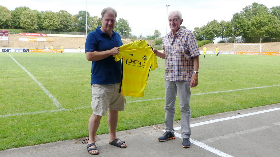Abteilungsleiter Wolfgang Graf und Lothar Hildebrandt (SportPalast) präsentieren das neue Vereinstrikot |