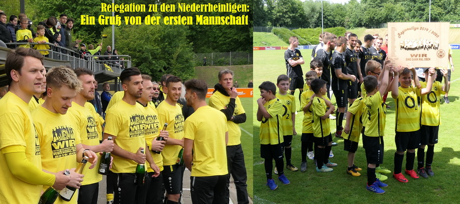 Drei Nachwuchs-Mannschaften des VfB Homberg kämpfen ab diesem Wochenende um einen Platz in den Niederrheinligen 2019/2020, alle Teams müssen zum Auftakt auswärts ran. Unsere erste Mannschaft - allen voran Cheftrainer Stefan Janßen - drückt den A-, B- und C-Junioren für deren Relegationsspiele kräftig die Daumen und wünscht viel Glück und Erfolg. Hoffentlich kann am Ende der Runde ähnlich gefeiert werden wie nach dem Aufstieg der "Großen" in die Regionalliga, Kapitän Dennis Wibbe und Co. würden sich von Herzen mitfreuen.