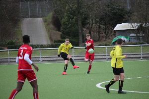 Heute empfingen wir den Jungjahrgang von RW Essen der wenn alles gut läuft in der nächsten Saison in der B-Jugend Bundesliga spielen wird. Bei unserer Mannschaft war die personelle Situation heute wieder sehr angespannt so das einige Spieler aus der B2 aushelfen mussten. Zudem wurde nach einer halben Stunde wieder ein Spieler von uns zur Untersuchung ins Krankenhaus gebracht. Die Pechsträhne scheint nicht abzureißen. Unter diesen Umständen zeigten die Jungs aber eine ordentliche Leistung. Beide Teams hatten einige klare Togelegenheiten. Doch eine Mischung aus Unvermögen, Pech und guten Torhüter-Leistungen ließen die Begegnung schließlich 0:0 enden. Obwohl die Gäste ein leichtes Chancenplus hatten verdiente sich unsere Mannschaft durch eine hohe Lauf- und Einsatzbereitschaft das torloses Unentschieden. Glückwunsch!
