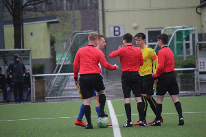 Heute empfingen wir am Karnevalssonntag den Tabellenführer der Bergischen Leistungsklasse die Mannschaft der Sportfreunde Baumberg im Achtelfinale des Niederrheinpokals. Bei "Sauwetter" (Dauerregen und Sturmböen) und zum wiederholten Male Personalnot kam unser Team nur mäßig in die Partie hinein. Dementsprechend gingen die Gäste auch früh in Führung. Aber nach knapp einer Viertelstunde bekamen wir das Spiel immer besser in den Griff und erzielten nach einer schönen Kombination den Ausgleich. Von da an waren unsere Jungs spielbestimmend, allerdings kamen die Baumberger nach Kontern auch das ein oder andere mal gefährlich vor unser Tor. Zur Halbzeit stand es damit 1:1. In der zweiten Hälfte ein ähnliches Bild. Unser Team versuchte die Führung zu erzielen aber bis zur vierten Minute der Nachspielzeit passierte nichts. Dann bekamen wir einen Eckball und mit großen Willen wurde der Ball über die Torlinie bugsiert. Kurze Zeit später erfolgte der Schlusspfiff und der Jubel war groß. Insgesamt ein verdienter Erfolg unserer Jungs und somit steht die Mannschaft im Viertelfinale des Niederrheinpokals. Glückwunsch!