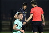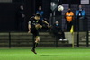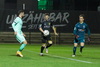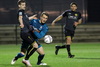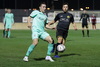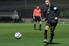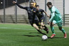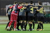 Vor dem Anpfiff wurde die nächste Hiobsbotschaft bekannt: Die personell in dieser Spielzeit über Gebühr gebeutelten Gelb-Schwarzen müssen wochenlang - wahrscheinlich sogar bis zum Ende der Saison - auf Nurettin Kayaoğlu verzichten. Trainer Sunay Acar, Co-Trainer Oliver Adler und Torwarttrainer Markus auf der Heiden sind wahrlich nicht zu beneiden, jetzt sind fünf "Langzeitverletzte" zu beklagen. Doch in Homberg läßt man sich nicht hängen und mit Danny Rankl als Sturmspitze und den Außenbahnspielern Ahmad Jafari (rechts) und Marvin Lorch (links) um den zentral agierenden Pascale Talarski ging es los. Keine Frage, die Gastgeber haben eine spiel-, lauf- und kampfstarke Mannschaft, das zeigte sich in der ersten Halbzeit allerdings nur wenige Minuten. Zwei starke Abwehraktionen von Jeffrey Malcherek verhinderten Chancen, dann übernahmen die Gäste immer mehr die Oberhand. Torgefahr enstand lange nicht, bis ein Kopfball von Danny Rankl nach Hereingabe von Ricardo Antonaci abgeblockt wurde und Marvin Lorch mit vollem Risiko abzog - der Ball flog aber deutlich über die Latte. Antonaci brachte wenig später einen Ball an den langen Pfosten, den Pierre Nowitzki nur um Haaresbreite verpaßte. Und auch am Führungstreffer war der Rechtsverteidiger beteiligt, sein Zuspiel auf Ahmad Jafari leitete der Iraner auf Necirwan Mohammad weiter, der sich klasse durchsetzte und für Pascale Talarski auflegte - der VfB-Zehner traf mit links zum 0:1 und belohnte seine Farben für ihren couragierten Auftritt.