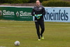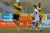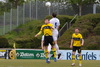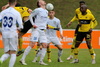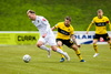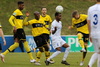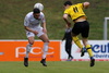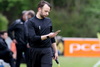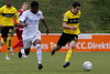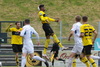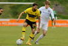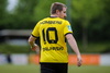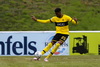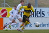 Nach dem Wiederanpfiff ging es gut zehn Minuten lang ereignislos weiter, dann sorgte Said Harouz - im kommenden Jahr für Wiedenbrück aktiv - für Aufregung: Der Homberger Angreifer wollte einen Elfmeter schinden und sah für die Schwalbe die gelbe Karte. Nach einer guten Stunde lag dann endlich der Anschlußtreffer in der Luft, Danny Rankl ging auf die Reise und konnte sich auch gegen den Gästekeeper durchsetzen, doch der Abschluß wurde abgewehrt - hier wäre wohl ein Abspiel auf den heranstürzenden Kapitän Thorsten Kogel die bessere Lösung gewesen. Etwa zeitgleich erfolgte die Einwechslung von Justin Walker, für den langjährigen Leistungsträger war es erst der vierte Saisoneinsatz. Wenig später kamen auch Pierre Nowitzki und Nicolas Hirschberger in die Partie, die Gastgeber zeigten jetzt den unbedingten Willen, das Spiel zu drehen. Doch die Abwehr der Gäste bekam immer wieder ein Bein oder ein anderes - "legales" - Körperteil dazwischen, das Anschlußtor wollte einfach nicht fallen. Thorsten Kogel scheiterte nach Vorarbeit von Danny Rankl und Ricardo Antonaci am glänzend parierenden Marcel Hölscher. Daß es dann mit Kogel ausgerechnet der am heutigen Tag wohl stärkste Gelb-Schwarze war, dem nach einer "Kerze" der Ball auf den Arm fiel und der damit einen Handelfmeter verschuldete, war letztendlich nur eine Randnotiz - das 0:3 in der Nachspielzeit war für den Ausgang der Begegnung unbedeutend. Insgesamt war die Homberger Leistung blaß, was sicherlich auch den vielen Ausfällen zuzurechnen ist. Kampf und Einsatz waren in Ordnung, die Moral der Mannschaft ist offensichtlich intakt.