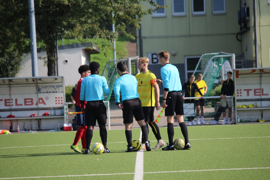 Im ersten Meisterschaftsspiel empfingen wir heute bei schönen Sommerwetter die U19 vom 1. FC Kleve. Nach einer guten und intensiven Vorbereitung waren unsere Jungs von Beginn an voll konzentriert in der Begegnung drin. So dauerte es auch nur bis zur 2. Minute als wir die Führung erzielen konnten. Auch danach waren wir spielbestimmend aber wie aus dem nichts fiel der Ausgleich. Unglücklich gelang der Ball zu einem Klever Spieler der auf alleine dann auf unser Tor zulaufen konnte. Im Strafraum kam es dann zu einem Zusammenstoß mit unserem Torwart und der Schiedsrichter gab die Doppelbestrafung rote Karte und Elfmeter! So gelang den Gästen der Ausgleich. Was unsere Jungs dann aber bei sommerlichen Temperaturen und einem Spieler weniger 75 Minuten lang ablieferten war schon bemerkenswert. Laufstark, zweikampfstark und vor allem sehr geordnet und diszipliniert wurde die Unterzahl kompensiert. Hinten stand man sicher und vorne konnten wir immer für Entlastung sorgen und schließlich zwei weitere Treffer erzielen. So endete die Partie trotz langer Unterzahl letztendlich hoch verdient mit 3:1 für unsere Elf. Glückwunsch!