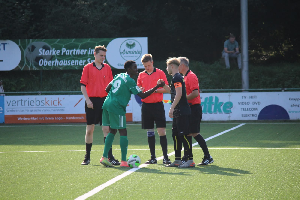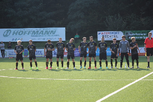 Heute musste unsere U19 bei der ambitionierten Mannschaft von Arminia Klosterhardt antreten. Nach dem guten Saisonstart wollte unser Team auch heute punkten und ging dementsprechend motiviert und engagiert in die Begegnung hinein. Dementsprechend gingen wir bereits nach wenigen Spielminuten in Führung. Anschließen hatten wir die Begegnung weiter im Griff, versäumten aber das Ergebnis auszubauen. So ging es dann mit einer knappen Führung in die Pause. Nach der Pause versuchte Klosterhardt direkt Druck auf unser Tor aufzubauen. In der 55. Minute dann ein kurzer Schockmoment für unser Team. Nach einem Zusammenprall mit dem Torwart der Gastgeber blieb unser Spieler bewusstlos auf dem Boden liegen. Nach schneller Erstbehandlung und anschließendem Abtransport mit dem Krankenwagen ist der Spieler wieder bei Bewusstsein und auf dem Wege der Besserung. Nach knapp 15-Minütiger Unterbrechung ging es dann weiter. Unsere Elf hielt dem Druck der Gastgeber durch eine sehr gute läuferische und kämpferische Vorstellung stand und bis auf zwei brenzlige Situationen ließ man hinten wenig zu. Kurz vor Schluss konnten wir dann endlich nach einem Konter auf 2:0 erhöhen. Dabei blieb es bis zum Schlusspfiff. Mit diesem Erfolg setzt sich unsere U19 erstmal in der Spitzengruppe der Niederrheinliga fest und bleibt ungeschlagen. Glückwunsch!