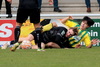 Nach 5 Minuten die erste Szene der Hausherren. Über die linke Seite fliegt eine Flanke in den Homberger 16er die Nico Lübke falsch einschätzt und nicht klären kann. In seinem Rücken kommt Cagatay Kader an den Ball, der aber aus kurzer Distanz rechts das Tor verfehlt. Homberg von dieser ersten Schrecksekunde aber sofort spielbestimmend auf dem Platz. Mit guten Kombinationen gelang es sich immer wieder nach vorne zu dribbeln, Straelen in dieser Phase immer einen Schritt zu langsam. 8 Minuten waren gespielt als Yassine Bouchama zum Tanz mit 3 Abwehrspieler von Straelen einlädt, die ihn nicht stoppen können. Yassine behält die Übersicht, legt quer auf Julian Meier, der aus 18 Metern links ins Tor einnetzt. 35 Minuten waren gespielt als der Straelener Tobias Peits zum Tackling in Höhe der Mittelllinie ansetzt. Der Schiedsrichter entscheidet auf Foul und zieht zur Verwunderung aller die Rote Karte. Eine etwas harte Entscheidung. Straelen von nun an nur noch mit 10 Mann auf dem Platz. Der VfB drückt weiter nach vorne und lässt Straelen weiterhin nicht ins Spiel kommen. Kurz vor dem Halbzeitpfiff dreht dann Jonas Pfalz auf. Auf Höhe des rechten Strafraumecks kommt er an den Ball, visiert das Tor an und vollendet oben links in den Winkel zur hochverdienten Halbzeitführung von 2:0.