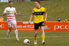 Homberg kam sehr gut ins Spiel. Viel Ballbesitz und eine klare Dominanz bekamen die Zuschauer in den ersten 20 Minuten im PCC Stadion zu sehen. Immer wieder gelang es dem VfB sich gute Abschlüsse zu erarbeiten. So war es Arcones, der nach 5 Minuten aus 18 Metern abzog und das Tor nur knapp verfehlte. Eine Minute später dann Bouchama aus halb linker Position, der das lange Toreck anvisierte. Fortuna Keeper Langhoff musste sich gewaltig strecken, um hier das Homberger Tor zu verhindern. Düsseldorf war in dieser Anfangsphase tief in die eigene Hälfte zurückgedrängt und konnte selber kaum Akzente setze. 13 Minuten waren gespielt als der VfB zur nächsten Tormöglichkeit ansetzte. Diesmal war es Jafari, der mit einem Flachschuss aus der zweiten Reihe nur knapp das Tor verfehlte. Fortuna, von denen bisher nur wenig zu sehen war, kamen dann aber in der 27. Spielminute aus dem nichts gefährlich vor das Tor. Es gelang den Gästen mit einem Steilpass zwischen die Verteidiger, Emir Kuhinja frei zu spielen, der sich alleine auf den Weg Richtung Gutkowski machen konnte und keine Mühe hatte zur überraschenden Führung für Fortuna Düsseldorf einzuschieben. Homberg, die bis hierhin ein gutes Spiel machten, mussten sich nach dem Gegentreffer kurz sammeln, hatten dann aber in der 34. Spielminute selbst die Gelegenheit zum Tor. Nach einer Ecke von Wellers, kam Sander Rau mit dem Kopf an den Ball, jedoch zischte dieser wuchtige Kopfball über die Querlatte. Kurz vor der Pause hätte dann Düsseldorf das Spiel völlig auf den Kopf stellen können. Mit einer der wenigen Torchancen traf Robin Bird die Latte, nachdem er sich über die rechte Seite durchsetzen konnte. So ging es mit 0:1 in die Halbzeit.