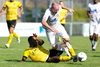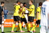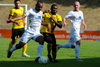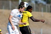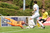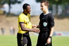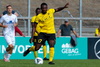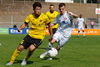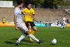 Es läuft noch die erste Spielminute, als der VfB die erste Chance für die Führung hat. Ich Eckball von Ahmed-Malik Uzun, steigt Johannes Sabah zum Kopfball hoch und setzt den Ball nur knapp über die Querlatte. 7 Minute später hat dann Jafari die Führung auf dem Fuß. Aus 17 Metern schießt Ahmad Jafari den Ball Flach und wuchtig auf das Tor, Gäste Torwart Martin Klafflsberger hat große Mühe bei diesem Schuss und kann den Ball nur nach vorne abwehren, Uzun reagiert am schnellsten, kann den Ball jedoch nur knapp neben den Pfosten setzen. Ein wirklich viel Versprechender Anfang für alle gelb-schwarzen Fans. Nach 20 Minuten schallte dann zum ersten Mal ein Torjubel durch das PCC Stadion. Uzun wird im Strafraum mit einem quergespielten Ball in Szene gesetzt und versenkt den Ball im gegnerischen Tor. Schiedsrichter Matti Lambertz bekam jedoch durch seinen Assistenten angezeigt, dass der Ball beim Abspiel auf Uzun bereits die Auslinie überschritten hatten, wodurch es hier weiter 0:0 stand. Der Schiedsrichter llte dann auch in der der nächsten Szene im Mittelpunkt stehen. Dem FSV gelang es mit einem seiner wenigen Angriffe, sich bis in der Homberger Strafraum durch zu dribbeln. VfB Schlussmann KC Hersey kommt aus seinem Tor und spielt Ball und Gegner. Matti Lambertz zeigt auf den Elfmeterpunkt, von dem Rinar Valyeyev zentral den Ball zur schmeichelhaften Führung der Gäste verwandelt. Der VfB behält auch nach diesem Rückschlag weiterhin die Oberhand in diesem Spiel und kommt weiterhin zu guten Chancen. Es dauert bis zur 43. Spielminute, bis man sich dann endlich selber belohnen kann. Ein Klärungsversuch der gaste landet bei dem heute stark spielenden Ahmed-Malik Uzun, der den Ball aus 12 Metern flach im linken Toreck versenkt. Homberg ist besser im Spiel und hat auch die besseren Chancen, trotzdem steht nach 45 Minuten 1:1