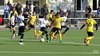 Wenn am siebten Spieltag einer Meisterschaftsrunde zwei Mannschaften aufeinandertreffen, die beide sechs Siege auf dem Konto haben und auch noch phänomenale Torverhältnisse - 52:1 und 34:0 - vorweisen können, dann erwartet das Publikum in der Regel ein enges Spiel. Das aber gab es heute am PCC-Stadion nicht, als die U13 des VfB Homberg auf die U13 des SV Budberg traf. Die Gastgeber zeigten sich vom Anpfiff an bis weit in die zweite Hälfte dem Kontrahenten deutlich überlegen, das Team ließ den Ball sehr gut durch die eigenen Reihen laufen, setzte sich in Zweikämpfen und Laufduellen ein ums andere Mal durch und erspielte sich eine Torchance nach der anderen. Daß es zur Pause nur 2:0 stand, lag an zwei starken Gästekeepern - der erste wurde nach einer Parade von einem Mitspieler unglücklich getroffen und mußte das Feld verlassen -, es lag aber ebenso am fahrlässigen Umgang der Gelb-Schwarzen mit ihren Möglichkeiten. Dazu kam eine gehörige Portion Pech, beispielsweise als der Ball von der Unterkante der Latte ins Feld zurücksprang - es war nicht der einzige Aluminiumtreffer. In der zweiten Halbzeit zeigten sich die Gäste verbessert, bis zum Schlußpfiff jedoch blieben "Besuche" der Budberger im Homberger Strafraum eine Seltenheit. Die Partie war erfreulicherweise ausgesprochen fair, was sich auch beim 3:0 feststellen ließ: Der Schiedsrichter hatte einen Pfostenschuß gesehen, ließ sich aber von beiden Seiten umstimmen. "Einseitig" muß übrigens nicht "langweilig" bedeuten, dafür sorgten immer wieder gelungene Spielzüge und gekonnte Einzelaktionen. Und alle - auf beiden Seiten - eingesetzten Akteure gaben - bei überraschend gutem Herbstwetter - keinen Ball verloren, so ein Spiel schaut man sich gerne mal an.