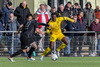 Homberg von Beginn an gut im Spiel. Der Ball ist viel im Ballbesitz der Gelb-Schwarzen, die den Gegner weit vom eigenen Tor weghalten. Nach 19 Minuten startet der VfB einen Angriff über die rechte Seite. Marcinek nutzt seinen freien Raum und startet auf Höhe der Mittellinie Richtung gegnerischem Tor. Velbert Kapitän Timo Brauer setzt zum Tackling an und trifft Marcinek von hinten in den Beinen. Schiedsrichter Güzel zögert nicht und zieht folgerichtig die Rote Karte. Homberg ab der 20. Spielminute in Überzahl. Der VfB mit der personellen Überzahl nun noch kontrollierter im Spielaufbau. Velbert nur nach einem Standard gefährlich. Dario Schumacher trifft nach einem Freistoß aus gut 19 Metern nur die Querlatte. Auf der anderen Seite ist es auch eine Standardsituation, die der VfB allerdings besser nutzt. Nach einem Freistoß von der linken Seite herrscht ein Durcheinander im Velberter Strafraum. Heni Ben Salah steht goldrichtig und stochert den Ball über die Linie. Homberg geht nach dem Spielverlauf verdient mit einer 1:0 Führung in die Kabine.