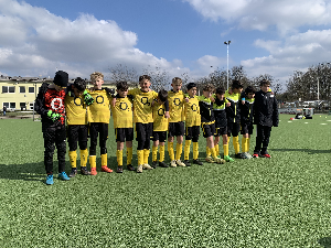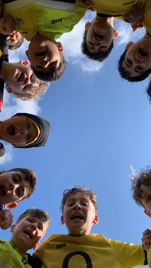 In Halbzeit zwei brauchten wir ein paar Minuten, um den selben Druck wie in Halbzeit eins aufzubauen. Den nur mit einem Wechselspieler angereisten Gegner verließen allerdings mit fortlaufender Spieldauer dann auch ein paar Kräfte. So konnte Arian in der 29. Minute den Doppelpack schnüren. In großer Spiellaune zeigte sich auch der zur Halbzeit eingewechselte Bekir, der innerhalb von zwölf Minuten gleich viermal einnetzte (32., 33., 38. und 44. Minute). Besonders erwähnenswert war dabei Bekirs erstes Tor, da diesem ein diagonaler Flugball von Phil vorausging. Durch diese gute Übersicht von hinten rechts hebelte Phil die komplette Abwehr aus. Aber auch das letzte Tor von Bekir, ein in den Winkel geschlänzter Freistoß, veranlasste die Eltern auf der Ostkurve zu lautem Jubel und Beifall. In der 46. und 48. Minute erhöhten Eymen und Amar, bevor der Gegner verletzungsbedingt auf fünf Feldspieler reduzieren musste. Wir nahmen unsererseits für die letzten zwei Minuten dann Phil nochmal vom Platz und spielten ebenfalls zu fünft. Den dadurch zusätzlich entstandenen Platz auf dem Feld nutzte Jasha in der 49. Minute dann noch zum Schlussakkord.
