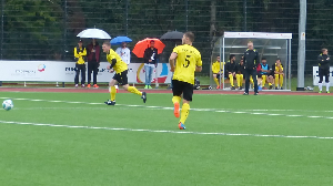 Bei trübem Regenwetter liefen mit Sinan Atabay, Ekrem Duljaj und Tolga Dügencioglu drei "Leihgaben" aus dem Landesliga-Kader für die Gelb-Schwarzen auf, die Gäste übernahmen von Anfang an das Kommando. Atabay sorgte nach einer Ecke mit einer Kopfball-Bogenlampe für die Führung und legte später Luca Palla das 0:2 auf, der aus der A-Jugend aufgerückte Allrounder ließ Alemannia-Keeper Andre Ringelberg keine Chance. Ein direkt verwandelter Freistoß von der Strafraumgrenze brachte die Gastgeber auf 1:2 heran, Kapitän Marvin Wesel traf genau ins rechte untere Eck. Doch Sinan Atabay stellte noch vor dem Halbzeitpfiff den Zwei-Tore-Abstand wieder her, mit dem 1:3 ging es wenig später in die Kabinen.