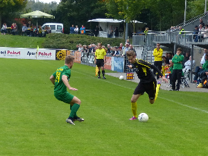 Der erste Durchgang ging klar an den VfB Homberg, doch die Chancenverwertung war - nicht zum ersten Mal in dieser Spielzeit - suboptimal. Die Defensive ließ gegen einen keineswegs schwachen Gegner wenig zu, die Innenverteidigung mit Kapitän Thomas Schlieter und Julian Dusy stand sicher. Vorne wurden gute Gelegenheiten erspielt, Marcel Kalski köpfte nach Vorarbeit von Dennis Wibbe um Millimeter vorbei (10.), Oguzhan Cuhacis Schuß nach Wibbe-Vorarbeit landete in den Armen von Straelens starkem Keeper Marian Gbur (16.). Dann setzte Wibbe auf dem rechten Flügel Schlieter ein, dessen präzise Flanke Kalski mit dem Kopf nicht richtig erwischte (20.). Auch Joel Schoof scheiterte nach einer Wibbe-Ecke und anschließender Flanke von Cuhaci mit einem tollen Kopfball knapp (27.). Kalski schoß nach einer halben Stunde vorbei, Cuhaci setzte nach einer Flanke von Sunay Acar den Ball aus der Drehung über das Tor (40.), nach einem Cuhaci-Freistoß köpfte Acar den Ball neben das Tor - das 0:0 zur Pause schmeichelte den Gästen. Während der Halbzeitpause waren ob der vielen vergebenen Torchancen besorgte Stimmen zu hören, doch die Gelb-Schwarzen knüpften an die Leistungen des ersten Durchgangs an. Thomas Schlieter kam im Gästestrafraum zum Schuß, der Ball wurde aber zur Ecke abgewehrt (49.). Neun Minuten später spielte Sunay Acar den Ball zu Oguzhan Cuhaci - die "Experten" am Spielfeldrand sprachen schon vom "Fehlpaß", als der Ball noch unterwegs war -,"Ogi" nahm den Ball am rechten Strafraumeck an und versenkte das runde Leder mit einem plazierten Schuß im rechten unteren Eck - der Bann war gebrochen. Zwar zeigten die Gäste angesichts des Rückstands den Willen, dem Spiel eine Wendung zu geben, doch außer einer Aktion von Lukas Nabbefel, die der weit aus seinem Tor stürzende Philipp Gutkowski stark zunichte machte, wurde es vor dem VfB-Tor nicht wirklich gefährlich. Anders war es auf der anderen Seite, die "Hunderprozentigen" können hier gar nicht alle aufgeführt werden. Der wieder einmal überzeugende Thorsten Kogel bereitete mehrfach vor, auch Sunay Acar und Oguzhan Cuhaci legten auf - das Runde wollte nicht ins Eckige. Dann aber fiel doch noch das 2:0, der eingewechselte Stefan Schindler setzte sich erst bärenstark ein und dann bärenstark durch, bediente uneigennützig den mitgelaufenen und überall zu findenden Sunay Acar, der den Ball zum 2:0 in das leere Tor schob. Fünf Minuten vor dem Abpfiff legte Schindler nach Anspiel von Dennis Wibbe für Marcel Kalski das 3:0 auf, das Team vom Rheindeich konnte endgültig den zweiten Heimsieg der laufenden Saison bejubeln.
