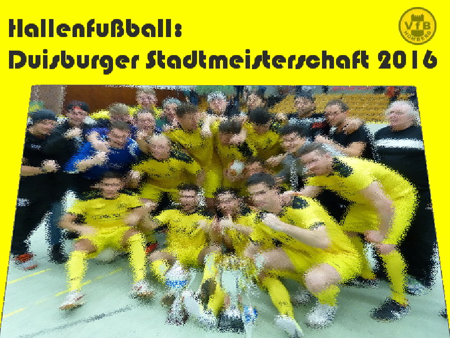 Knapp drei Wochen nach dem Erfolg beim "Hallenkönig 2015" steht für unsere Mannschaft das zweite Hallenfußball-Turnier dieses Winters auf dem Programm, von Donnerstag bis Samstag wird der Duisburger Stadtmeister 2016 ermittelt. Der VfB Homberg geht als Titelverteidiger ins Rennen, das Team um Kapitän Thomas Schlieter hat vor einem Jahr das Finale gegen den SV Genc Osman im Neunmeterschießen gewonnen. Am Donnerstag gilt es in der Vorrunde zu bestehen, dabei trifft man auf die Bezirksligisten Rheinland Hamborn und TuRa 88 Duisburg sowie den VfL Rheinhausen (Kreisliga A) und den 1. FC Hagenshof (Kreisliga B). Die beiden Erstplazierten qualifizieren sich für den Samstag, auch als Gruppendritter kann man möglicherweise weiterkommen. Unsere Mannschaft hat ihr Potential beim "Hallenkönig 2015" eindrucksvoll unter Beweis gestellt, das Team von Trainer Stefan Janßen dürfte dementsprechend selbstbewußt antreten. Mit bislang neun Titeln sind die Gelb-Schwarzen gemeinsam mit dem MSV Duisburg Rekordmeister, warten wir mal ab, was bei der 30. Auflage des Wettbewerbs zu holen ist. Als Favorit geht zweifellos Oberligist MSV Duisburg II ins Rennen, doch in der Halle ist alles möglich.