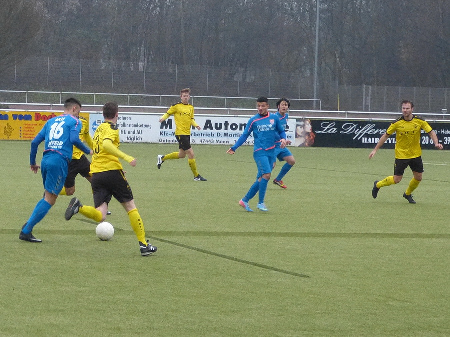 Trainer Stefan Janßen schickte die drei Winterneuzugänge auf den Platz, Timo Welky und Harun Can standen in der Startaufstellung, Florian Ortstadt spielte in der zweiten Halbzeit. Schon nach 60 Sekunden hätten die Gastgeber führen müssen, doch nach einer ansehnlichen Stafette über Dennis Wibbe, Stefan Schindler und Marcel Kalski schoß Oguzhan Cuhaci aus drei Metern über das leere Tor. Besser machten es die Gäste, die nach einem Abstimmungsproblem der VfB-Defensive durch Silvio Pagano das 0:1 erzielten. Thorsten Kogel, der am ehemaligen VfB-Jugendkeeper Ahmet Taner scheiterte, Marcel Kalski, Stefan Schindler und noch einmal Kalski vergaben gute Ausgleichschancen, bevor Dennis Wibbe nach einem Sprint über die rechte Seite den Ball zum 1:1 ins lange Eck beförderte.