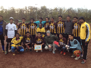 Im Oktober nahm unser Team Eritrea an einem Freundschaftsturnier der MSV-Fangruppierungen teil und belegte auf Anhieb den 7. Platz von 14 Mannschaften. In der Halbzeitpause des Freundschaftsspiels gegen eine Auswahl des Moerser Flüchtlingsheimes übergab Leonard Hammel von der MSV-Fangruppierung "Kohorte" im Namen aller MSV-Fangruppierungen als Turnierveanstalter eine Teilnehmerurkunde und einen Gutschein für Sportbekleidung als Preis an unser Team. Wir als Team Eritrea möchten uns an dieser Stelle ganz herzlich für den grosszügigen Preis und die Teilnahme an dem tollen Turnier bei allen MSV-Fans bedanken ! Ihr lasst uns alle ein wirklich "Willkommen" spüren und zeigt das "unser" Fussball Integration miteinander lebt !
