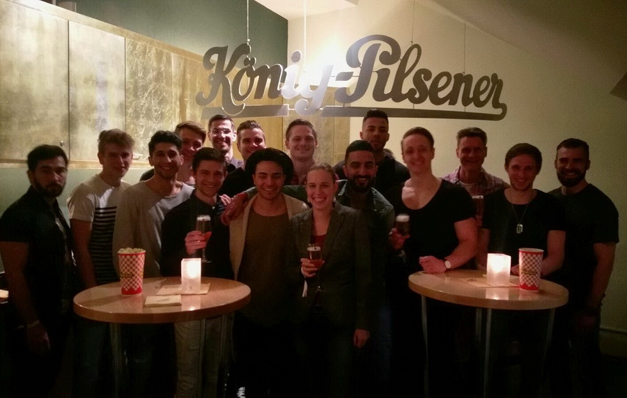 | Die Homberger mit Gastgeberin (v.l.n.r.): Cengiz Erbay, Thorsten Kogel, Sinan Atabay, Philipp Gutkowski, Dennis Wibbe, Thomas Schlieter, Julian Dusy, Sergen Sezen, Eric Holz, Baran Özcan, Sebastian Santana, Fabian Groß, Stefan Janßen, Stefan Schindler, Timo Friede |
