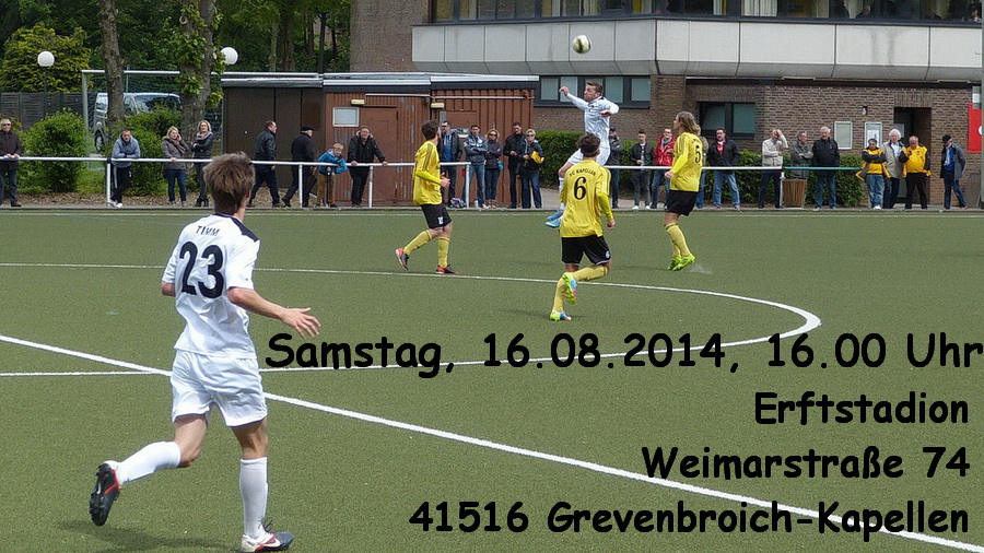 Der Anstoß erfolgt am Samstag um 16.00 Uhr im Erftstadion, Weimarstraße 74, 41516 Grevenbroich-Kapellen.
