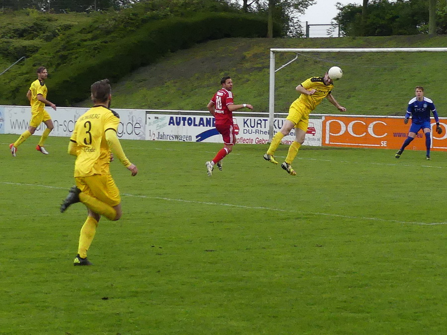 Die Gastgeber waren über 90 Minuten die überlegene Mannschaft, der SV Sonsbeck hatte in der ersten Halbzeit immerhin zwei Chancen: Philipp Gutkowski reagierte gegen Jan-Paul Hahn glänzend, Thomas Schlieter war gegen Felix Terlinden auf dem Posten. Ansonsten hatten Schlieter und Timo Welky hinten alles im Griff, Julian Dusy und Timo Friede standen den Innenverteidigern in nichts nach und setzten auch offensiv Akzente. Mehr los war vor dem Tor des sicheren Ex-Hombergers Michael Burda, doch die Chancenverwertung der Gelb-Schwarzen war einmal mehr suboptimal. Die schwache Leistung der Unparteiischen, die einige merkwürdige Entscheidungen trafen, trug ein wenig dazu bei, daß es zur Pause 0:0 stand.
