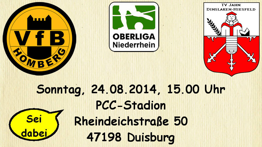 Am Sonntag unternimmt unsere Oberliga-Mannschaft den dritten Versuch, die ersten Meisterschaftspunkte der Saison 2014/2015 einzufahren. Nach dem respektablen 1:2 gegen die SSVg Velbert und dem bitteren 0:5 beim SC Kapellen-Erft hängen die Trauben gegen den TV Jahn Hiesfeld erneut hoch: Zwar blieben die Gäste im Auftaktspiel (1:3 beim VfR Krefeld-Fischeln) sowie beim ersten Heimauftritt (1:2 gegen den SV Hönnepel-Niedermörmter) ebenfalls punktlos, doch ein Blick auf den Kader macht deutlich, daß die Dinslakener ganz oben mitspielen müßten.