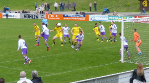 Nach dem Wiederanpfiff brachte Günter Abel Cengizhan Erbay und Enes Balci in die Partie, Sunay Acar und Eric Holz blieben in der Kabine. Die erste Aktion weckte Hoffnungen bei den Fans der Gelb-Schwarzen: Eine Ecke von "Mo" Attris, dessen Standards heute durchweg für Gefahr sorgten, versenkte Kapitän Thomas Schlieter mit einem wuchtigen Kopfball in den Maschen. Wenig später flog ein Nachschuß von Jura Adolf aus achtzehn Metern über die Querlatte, es hätte 2:1 stehen können. Das Tor fiel auf der anderen Seite: Nach einem Einwurf und einem kollektiven Defensiv-Blackout der Gastgeber schob Danny Rankl das runde Leder aus einem Meter über die Linie. Doch die Homberger wollten heute nicht verlieren, sie setzten sich in der Folgezeit in der Hiesfelder Hälfte fest. Ein Freistoß von Attris, ein Zuspiel von Tobias Schiek auf Enes Balci, ein Antritt von Jura Adolf, eine weitere gute Attris-Ecke - Gelegenheiten waren da. Doch nach einer weiteren Unaufmerksamkeit in der VfB-Defensive konnte Gino Mastrolonardo zum 1:3 abschließen - das Spiel war eine halbe Stunde vor dem Abpfiff entschieden. Zwar hatten die Gastgeber im weiteren Verlauf die besseren Möglichkeiten, doch zwingend waren nur ein Schuß von Thomas Schlieter nach energischem Einsatz von Cengizhan Erbay und schneller Ballweiterleitung durch Jura Adolf (78.) sowie ein Nachschuß von Almir Sogolj nach einem Freistoß von Muhamet Attris (90.). Die hochgewetteten "Veilchen" aus Dinslaken hatten das Geschehen aber im Griff und ließen nichts mehr anbrennen.