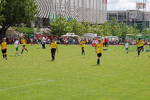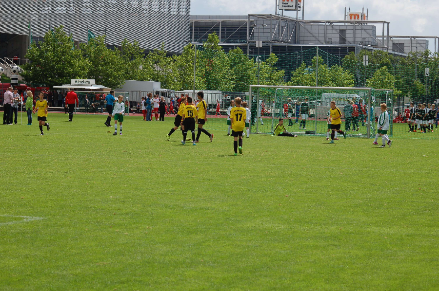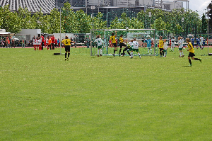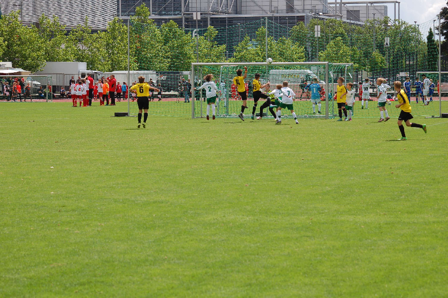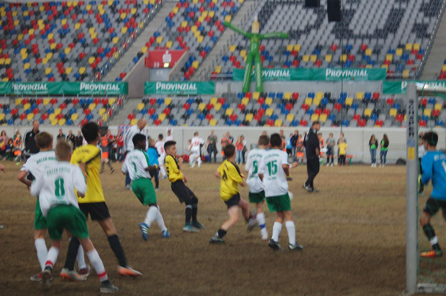 Beim letzten Turnier vor der Sommerpause dem Provinzial-Cup in und um der Esprit-Arena in Düsseldorf zeigten wir in der Vorrunde eine sehr gute Leistung. Vier Spiele, alle gewonnen mit einem Torverhältnis von 15:0, erreichten wir souverän das Achtelfinale. Dort trafen wir auf Union Frintrop und auch hier waren wir die klar bessere Elf. Obwohl wir fast nur in der gegnerischen Hälfte spielten versäumten wir trotz guter Chancen das Spiel für uns zu entscheiden. So kam es zum Elfmeterschießen. Hier war das Glück nicht auf unserer Seite und so schieden wir gegen den späteren Endspielteilnehmer mehr als unglücklich aus. Trotz alledem ein schöner Saisonabschluss. Allen Spielern und Eltern schöne und erholsame Ferien. Trainingsbeginn unserer Mannschaft wird am Montag der 01.08. sein.