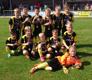 Mit der bekannten Nervösität ging es in die erste Partie gegen die DJK Appeldorn. Nach anfänglichen Abtasten nahmen die Homberger das Spiel in die Hand. Gegnerische Chancen wurden kaum zugelassen und man erspielte sich erste Chancen. Mehdi erzielte schließlich das einzige Tor des Spiels. Gegen den Gastgeber aus Sonsbeck spielten wir sehr stark, doch der Treffer wollte einfach nicht gelingen. Vielbeinig und mit Glück erreichten die Sonsbecker ein 0:0. Im Spiel 3 gegen einen starken SV Rees platze dann aber der Knoten. Zunächst spitzelte Miran, am kurzen Pfosten stehend, eine Ecke von Jasper mit dem Aussenriss ins Tor. Anschließend verwandelte Elias eine lehrbuchmässigen Angriff nach Zuspiel von Timo. Den Schlusspunkt machte wiederum Miran mit dem Treffer zum 3:0. Anschließend sahen die zahlreichen Homberger Anhänger ein torloses Unentschieden gegen einen starken RTV. Eine Partie mit weniger Homberger Offensivakzenten. Zum Abschluss ging es bei mittlerweile sommerlichen, warmen Temperaturen gegen den SUS Wesel-Nord. Eine kampfbetonte Partie ging Dank eines Doppelpacks von Elias an den VfB Homberg. Somit blieben wir ohne Niederlage in Gegentor, aber in der anstehenden Saison kommen andere Gegner.