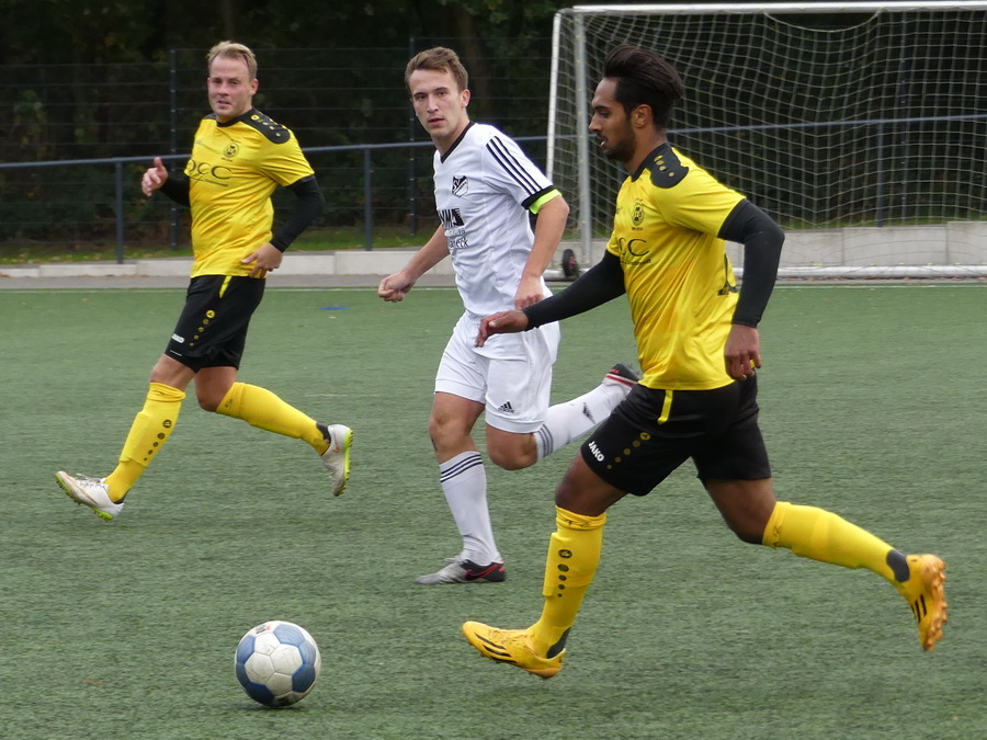 Vor und nach dem Seitenwechsel litt der Spielfluß unter den immer wieder ohne erkennbaren Grund ertönenden Pfiffen des Schiedsrichters. In der 53. Minute aber lief alles glatt, Faruk Yildirim konnte sich auf der rechten Seite durchsetzen, flankte "eigentlich" zu spät und legte dennoch Luca Palla die 0:1-Führung auf. Ekrem Duljaj setzte wenig später einen Freistoß knapp am linken Tor vorbei, dann sah der im ersten Durchgang verwarnte und nach einer guten Stunde "letztmals ermahnte" Aykut Oktay eine umstrittene gelb-rote Karte. In Unterzahl hielten die Homberger das Spiel sechs Minuten offen und hätten durch Yusuke Unoki sogar das 0:2 machen können, der Japaner scheiterte aber nach einem tollen Dribbling an SVB-Keeper David Dohmen. Auf der anderen Seite gab es - warum auch immer - einen Freistoß für die Gastgeber, Stephan Thiedge konnte einmal abwehren, dann traf Kapitän Tim Beerenberg aus vierzehn Metern zum 1:1. Auch das 2:1 entsprang einem Freistoß, dessen Grund nicht zu erkennen war - Marcel-René Bloemers traf aus zwanzig Metern in die linke untere Torecke. Die Gelb-Schwarzen ließen sich nicht hängen und hatten durch Unoki zwei gute Gelegenheiten zum Ausgleich: Nach einer Ecke von Faruk Yildirim flog der Ball über das Tor, nach einem herrlichen Anspiel von Carsten Golinski scheiterte "Uno" an Keeper Dohmen. Das 2:2 lag in der Luft, doch das nächste Tor fiel nach einem schlimmen Abspielfehler auf der anderen Seite: Kevin Correjon konnte allein auf Keeper Michel zulaufen und locker zum 3:1 vollenden. Der Widerstand der Gäste war allerdings immer noch nicht gebrochen, das Budberger Tor befand sich im Belagerungszustand. Ein traumhaft verwandelter Freistoß aus achtzehn Metern von Yusuke Unoki brachte das 3:2, weitere Gelegenheiten - darunter ein weiterer Unoki-Freistoß aus ähnlicher Situation - wurden leider nicht verwertet. Nach einem Budberger Konter verhinderte Frederic Michel gegen Kevin Torrejon das 4:2, wenig später war die Partie zu Ende. Trainer Jürgen Spicker erlebte die letzten Minuten von außen, Schiedsrichter Koch hatte ihn wegen lautstark vorgetragener Beschwerden des Innenraums verwiesen.