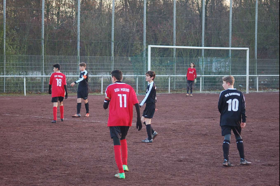 Im letzten Spiel der Hinrunde empfingen wir die Gäste vom GSV Moers. Krankheitsbedingt mussten wir heute auf einige Spieler verzichten. Auf dem schwer, teilweise gefrorenen Ascheplatz war es für beide Mannschaften schwer ordentlich Fussball zu spielen. Dennoch gingen wir kurz vor der Pause nach einem schön vorgetragenen Angriff verdient in Führung und wir gingen mit einer 1:0 Führung in die Halbzeit. In der zweiten Hälfte änderte sich zunächs nicht viel. Allerdings erzielten die Gäste aus stark abseitsverdächtiger Position den überraschenden Ausgleich. Kurze Zeit später mussten wir zudem verletzungsbedingt wechseln. Aber unsere Mannschaft zeigte eine Reaktion und den Willen das Spiel positiv für sich zu entscheiden. Und tatsächlich erzielten wir ähnlich wie in der ersten Hälfte nach einem schönen langen Pass die erneute Führung. Diese verteidigten die Jungs geschlossen bis zum Schlusspfiff und erkämpften sich verdientermaßen den Sieg. Damit schließt unser Team die Hinrunde als einzige Jungjahrgang-Mannschaft in der Leistungsklasse mit Tabellenplatz 5 ab und damit absolut im Soll. Glückwunsch!